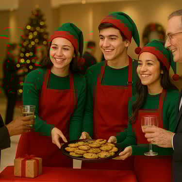 For customers that want extra holiday magic? We offer added services allowing you to book our elves to help make your holiday event run smoothly whether it’s greeting guests, helping with set-up, assisting with activities, or spreading festive cheer throughout your event.